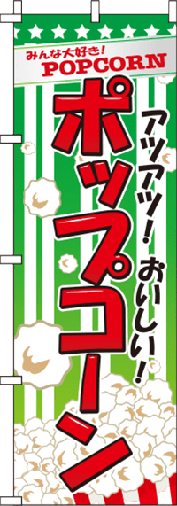 緑と赤の配色でよく目立つポップコーンらしい楽し気なデザインです。